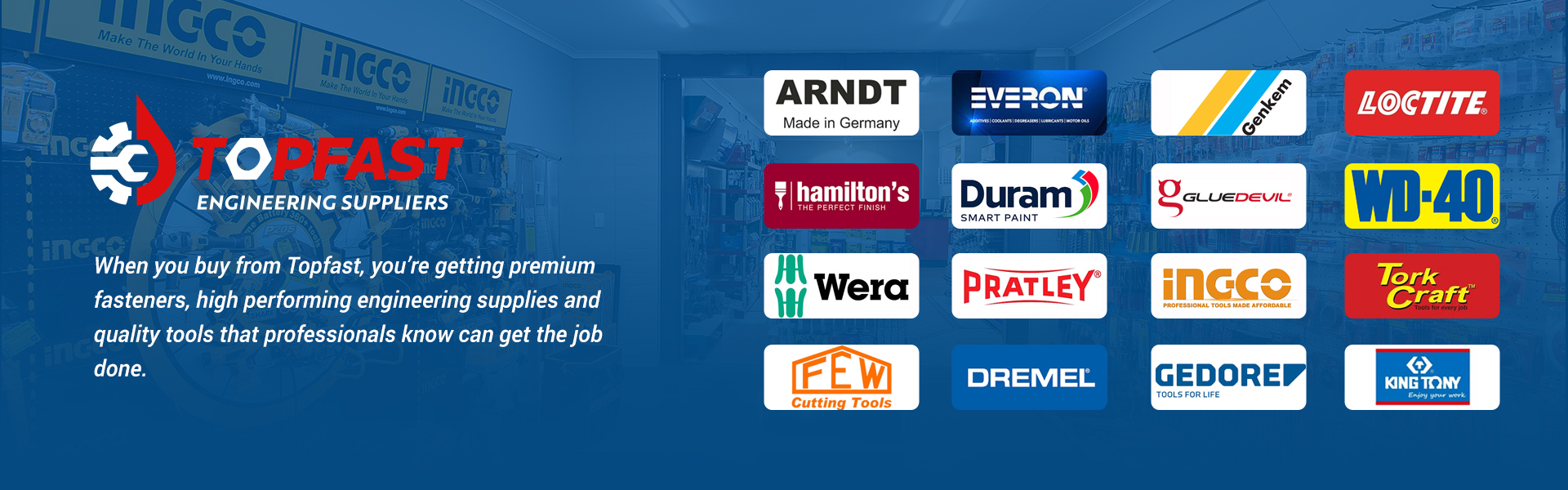 TOP - Representing our drive to be the best: top in quality, service, and reliability. FAST - Reflecting not only our quick, efficient service but also our expertise in fasteners — the heart of what we do. It’s about being fast and firm — to fasten, to tighten, to secure.